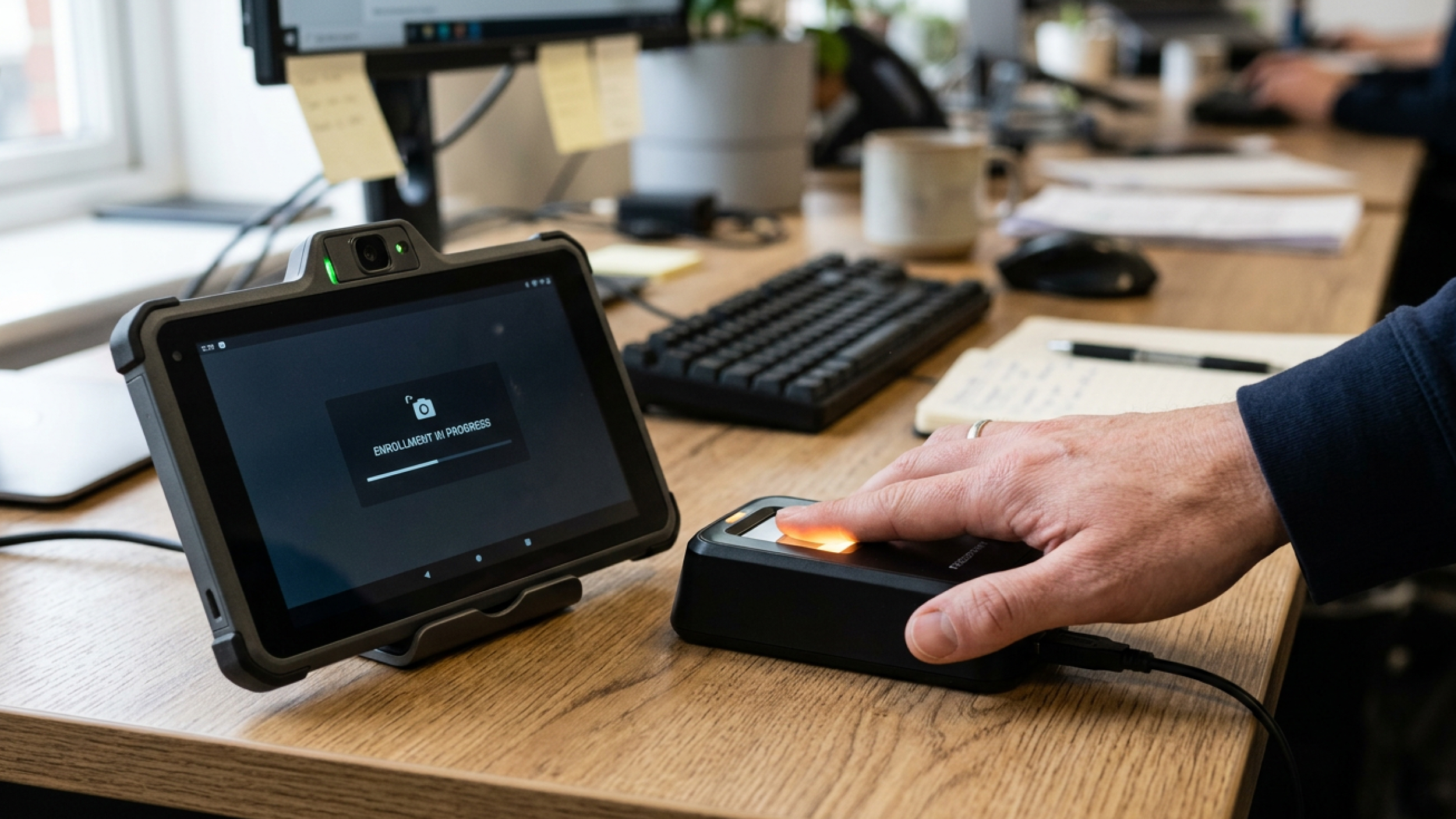 - Attend in person for a 15 to 30 minute session where fingerprints, a digital facial image, and an iris scan are collected.